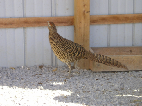 This pheasant is comparable in size to the Red Golden and their needs are effectively the same. As noted for the Red Golden, these two species should not be kept together, since they will cross-breed. A minimum pen size of 100 ft square is recommended along with access to grass. They are very Winter hardy but given their smaller size protection from wind in snowstorms is needed.